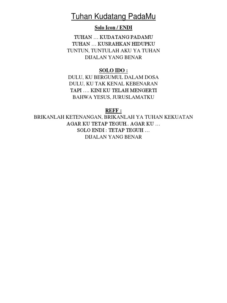 Lirik Lagu Tuhan Kudatang Padamu